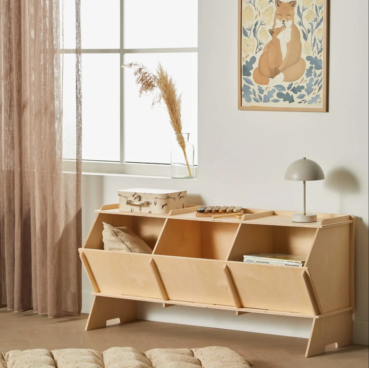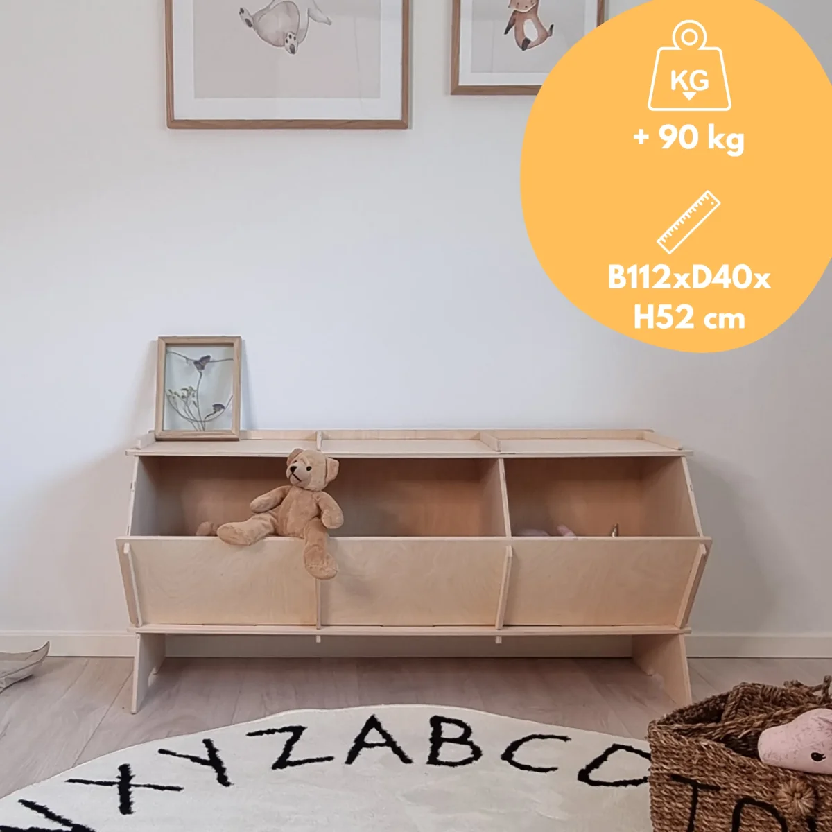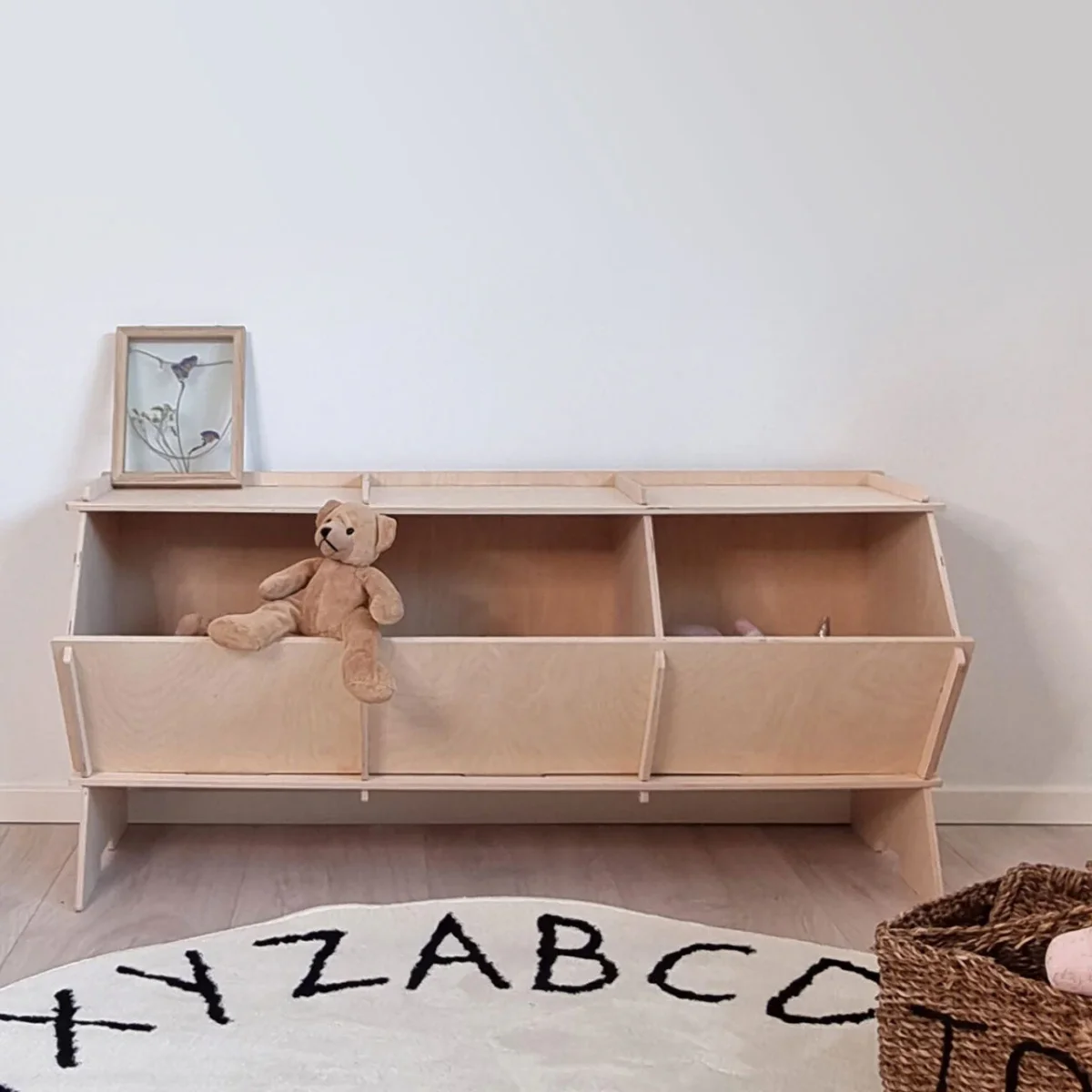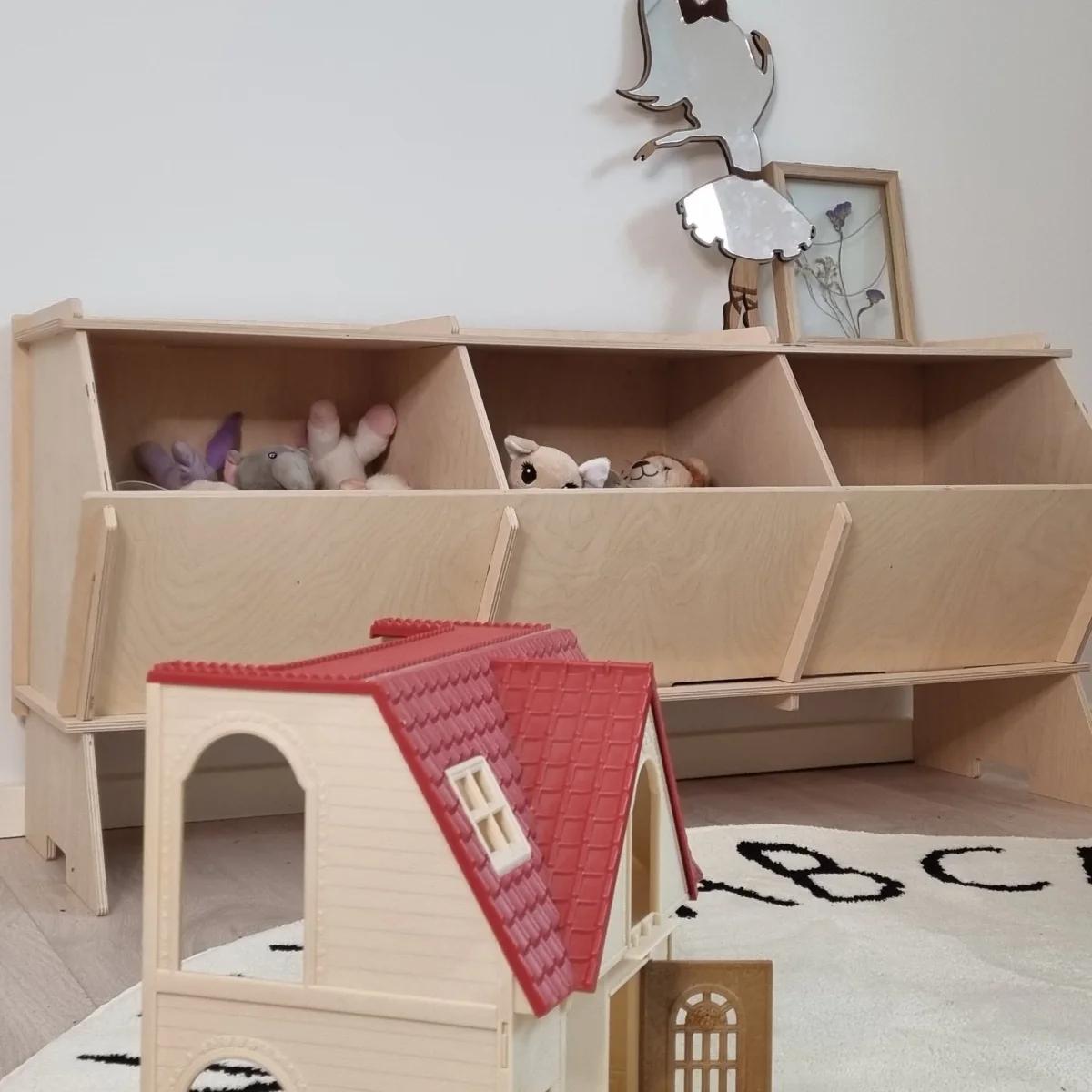 Met zijn 3 compartimenten kun je verschillende soorten speelgoed sorteren en bijhouden, zodat knuffels, poppen en auto’s elk hun eigen compartiment kunnen hebben.