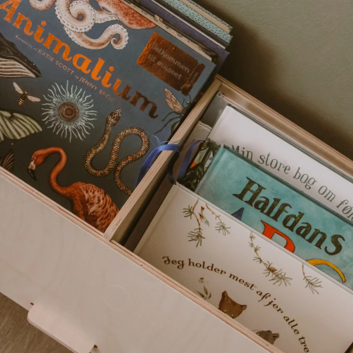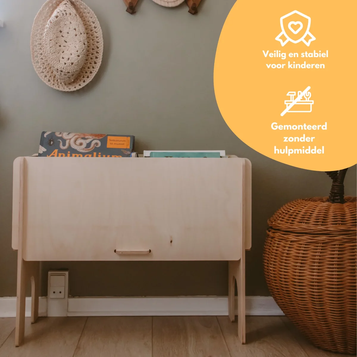 Met onze Albert boeken-/opbergkist kun je nu je boeken organiseren en thuis je eigen kleine minibibliotheek voor je kinderen maken. Onze ervaring is dat je thuis meer gaat lezen als de boeken gemakkelijk toegankelijk zijn.