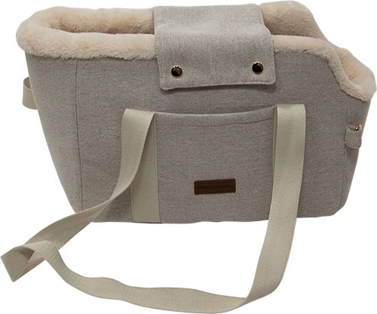 De stijlvolle hondendraagtas Home & Away Sofia Beige van Animal Boulevard biedt comfort en luxe voor jou en je huisdier. Deze elegante draagtas voor kleine hond of kat is voorzien van een zachte pluche voering, wat zorgt voor ultieme warmte en knusheid. De modieuze beige afwerking maakt deze tas een eyecatcher, terwijl de praktische verharde bodem extra stabiliteit biedt tijdens het dragen. Dankzij de ingebouwde houder blijft je huisdier veilig op zijn plek, ideaal voor dagelijkse uitstapjes, reizen of een gezellig dagje weg. Combineer stijl en functionaliteit met de Animal Boulevard draagtas Sofia Beige en neem je huisdier overal mee in comfort en klasse.