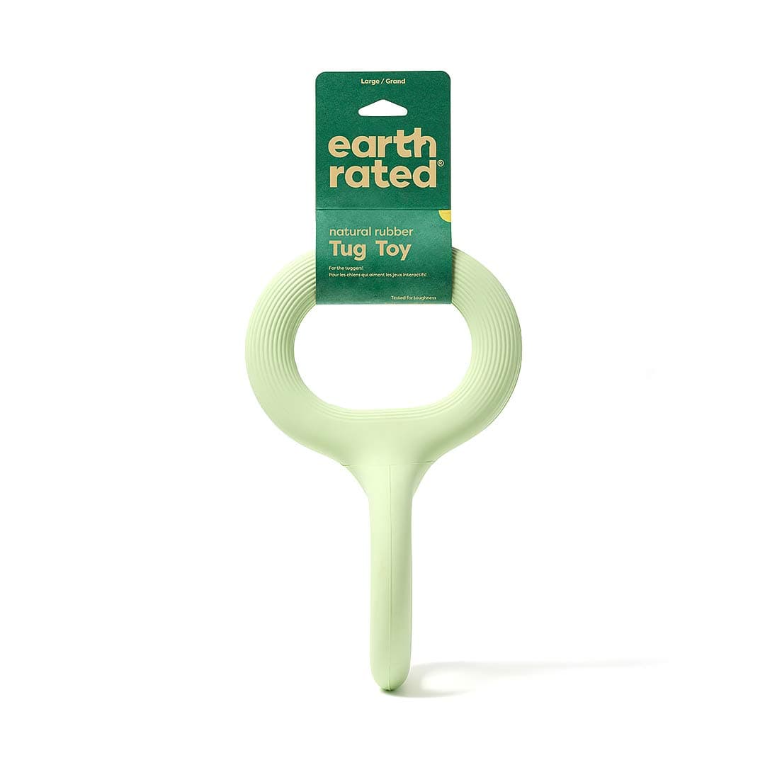 De Earth Rated Tug Toy is een hondenspeeltje van duurzaam materiaal, ontworpen met twee handvatten om interactief spelen te bevorderen. De gebogen vorm maakt het oppakken eenvoudig voor zowel jou als je hond. Het slimme, ergonomische ontwerp beschermt je pols door een natuurlijke beweging te ondersteunen, zodat je zorgeloos kunt spelen. Bovendien zorgt deze innovatieve vorm voor een veilige afstand tussen jou en je enthousiaste, trekkende pup, waardoor jullie samen eindeloos van interactief speelplezier kunnen genieten. De Tug Toy is gemaakt van duurzaam en verantwoord geproduceerd natuurlijk rubber en is vaatwasmachinebestendig in het bovenste rek, wat schoonmaken heel eenvoudig maakt.