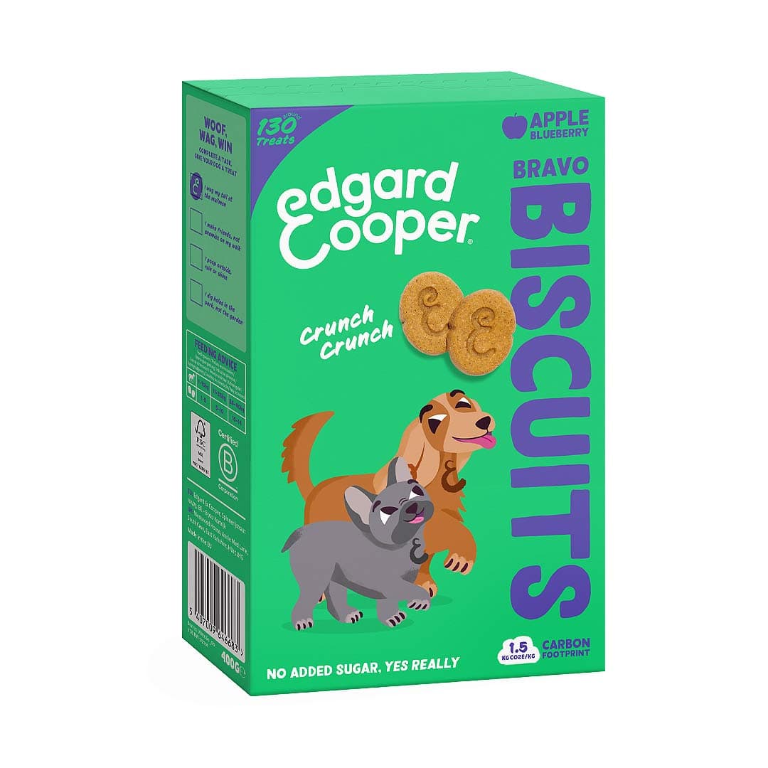 Echte snacks, echte voordelen: Bij Edgard & Cooper gebruiken ze échte ingrediënten zoals vers vlees en fruit voor lekkere snacks, zonder kunstmatige smaakstoffen, zonder toegevoegde suiker. Boordevol fruit en groenten, natuurlijke bronnen van antioxidanten die helpen bijdragen tot een gezond immuunsysteem. Deze koekjes met appel en bosbes zijn goedgekeurd door honden en hun baasjes. Een écht koekje om te krak-krak-kraken, dát gaat smak-smak-smaken!