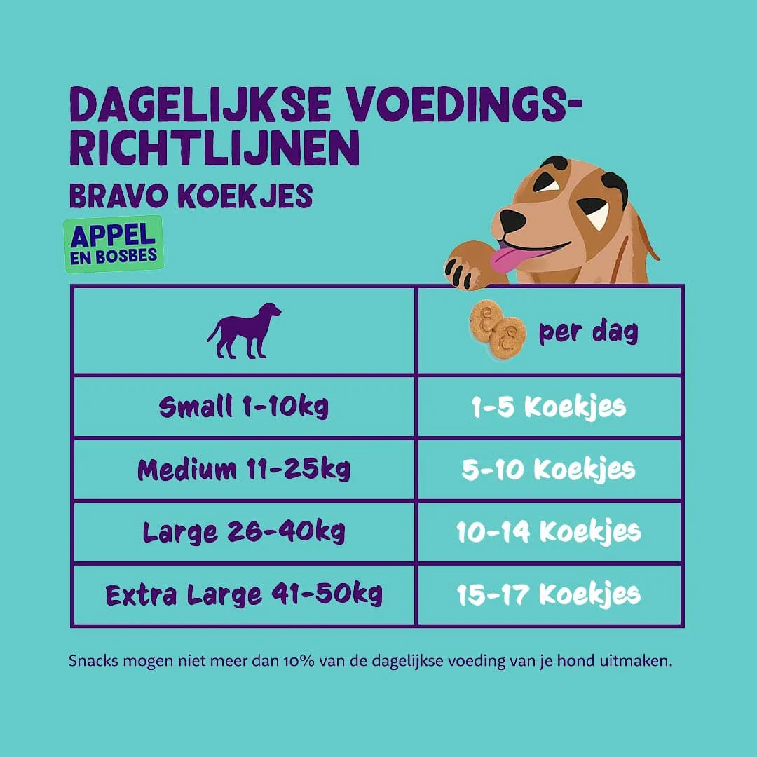 - Krokante koekjes met de heerlijke toevoeging van appel en bosbes, perfect voor honden van alle leeftijden!