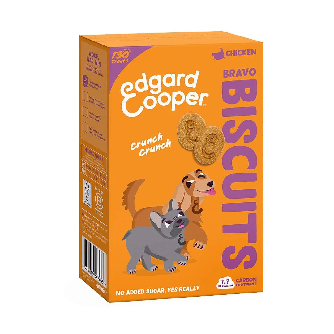 Haal de Edgard & Cooper Bravo Koekjes tevoorschijn als goed gedrag iets verdient om te krak-krak-kraken. Geduldig wachten, modderpoten laten afvegen, de deurbel horen en toch niet blaffen – allemaal bravomomenten die beloond mogen worden met een crunch. Deze koekjes zijn met liefde samengesteld voor honden en bieden een smaakvolle traktatie voor je trouwe viervoeter. De heerlijke toevoeging van kip maakt deze koekjes niet alleen onweerstaanbaar lekker, maar ook voedzaam. We weten zeker dat deze koekjes in de smaak vallen en dat je samen kunt genieten van bijzondere momenten.
