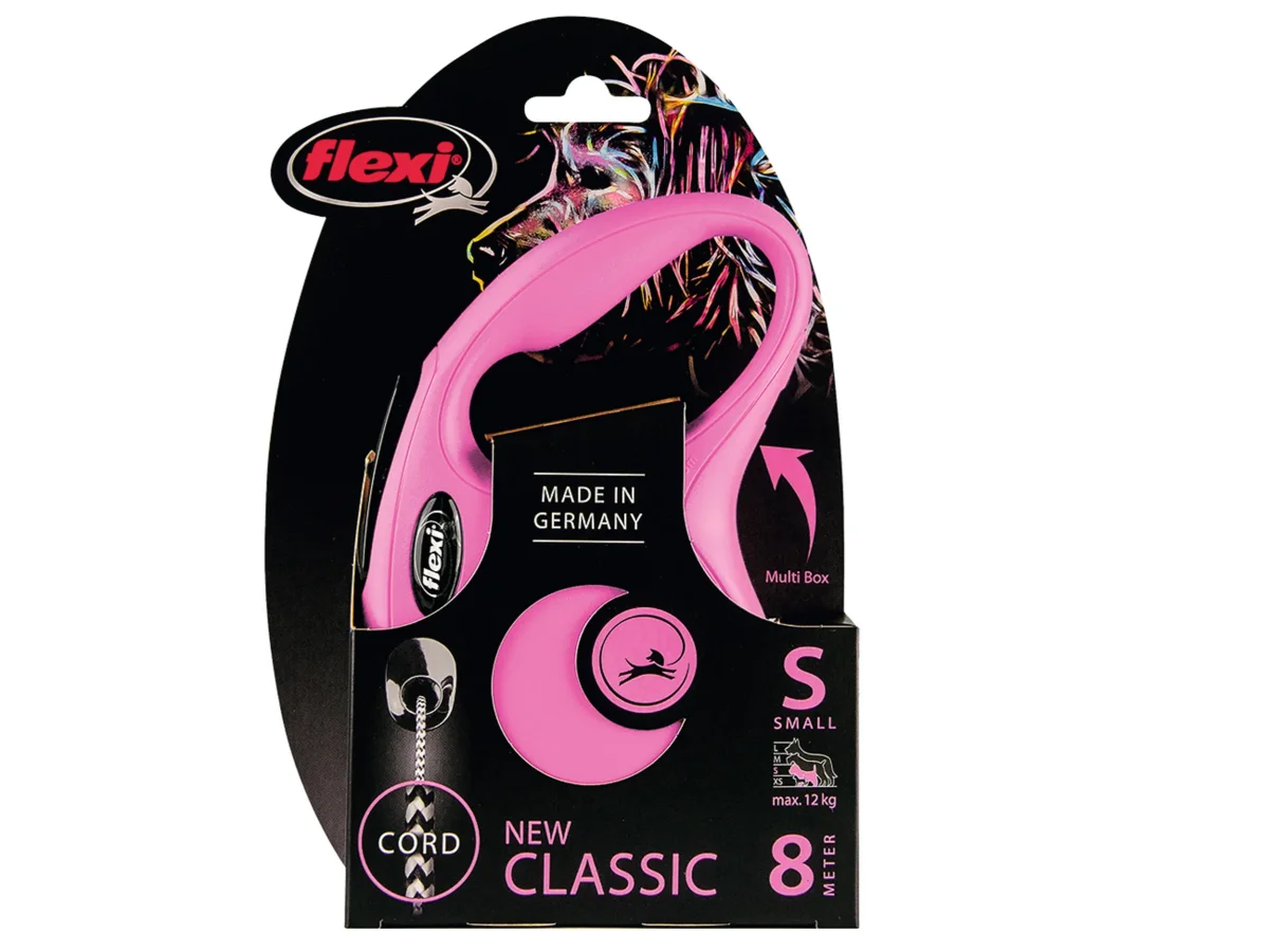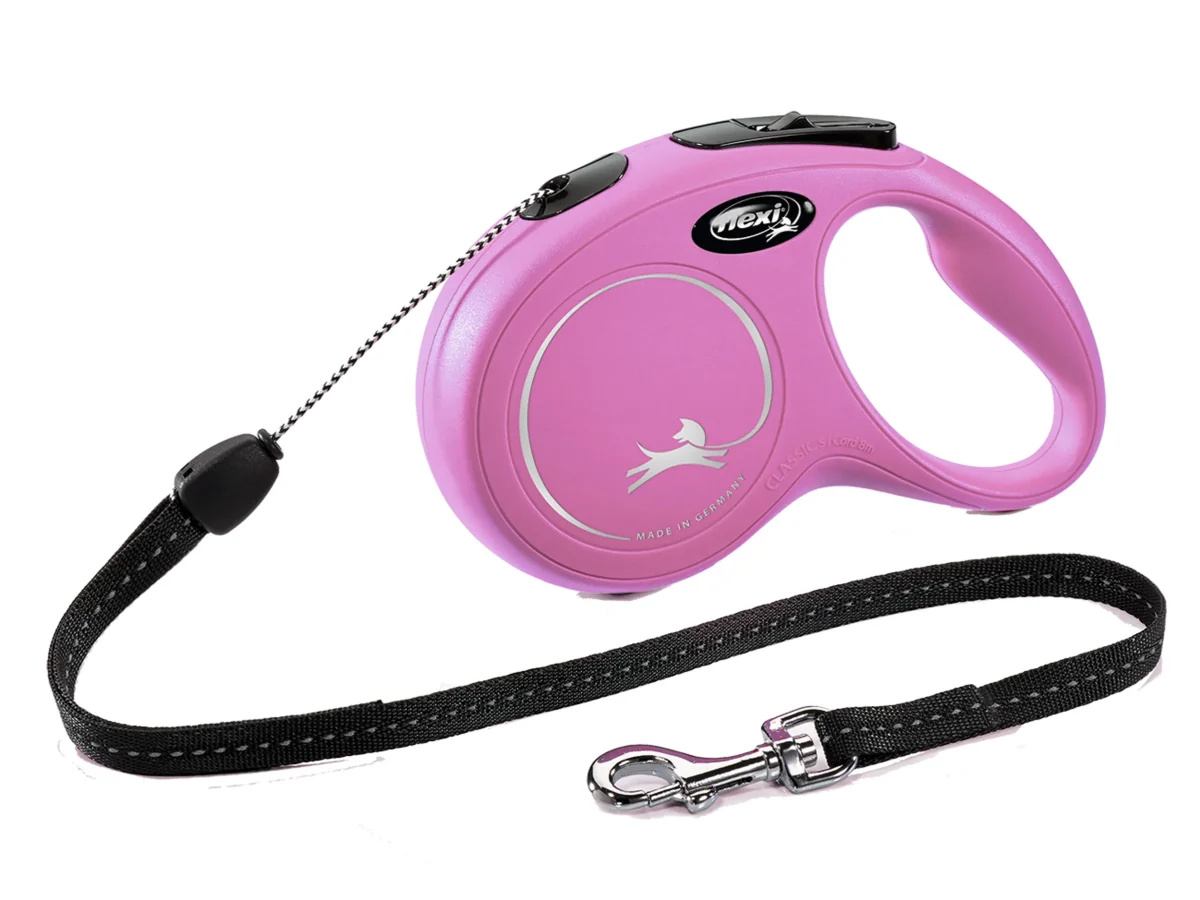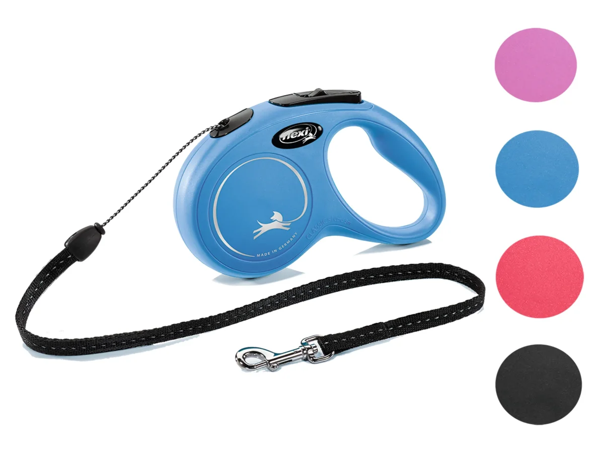 De New Classic rollijnen van Flexi zijn verkrijgbaar in verschillende lengtes en geven de hond veel bewegingsvrijheid. Het binnenste veermechanisme houdt het koord continu onder lichte spanning. Door het handige stopmechanisme is de lijn op iedere lengte in te stellen. Ook voor de mens is deze de rollijn zeer comfortabel door de gevormde handgreep. De lijn is uit te breiden met een LED lampje of een houder voor brokjes en poepzakjes.