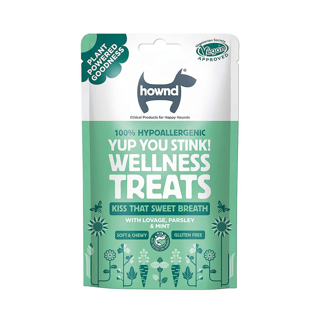 Heeft jouw hond ook een slechte adem? De HOWND Yup You Stink! Wellness Treats zitten vol kruiden zoals lavas, munt en peterselie. Deze geweldige mix culinaire kruiden helpen om een slechte adem te verminderen. Daarnaast helpen deze kruiden de spijsvertering te verbeteren en zijn ze mild voor de maag van jouw viervoeter. De Wellness Treats van HOWND zijn hypoallergeen, gemaakt met natuurlijk ingrediënten, glutenvrij en 100% plant powered. Geschikt voor honden met vlees- en zuivelallergieën. Geen GMO’s (Genetisch Gemodificeerd Organisme). Geen tarwe. Geen soja. Geen toegevoegde geur-, kleur- en smaakstoffen, suikers of vul- en conserveringsmiddelen.