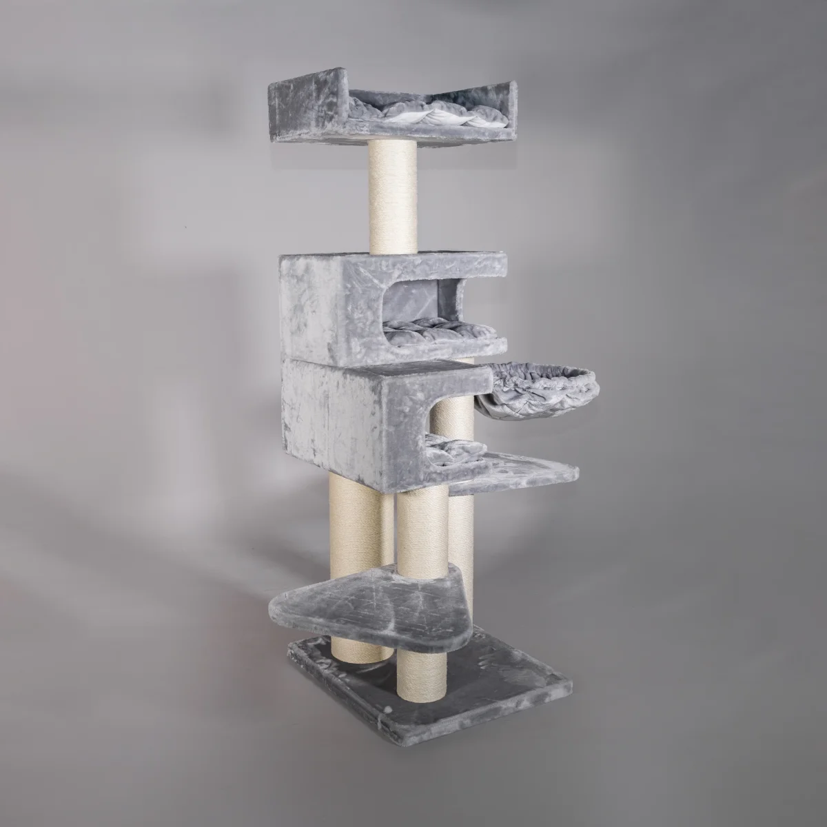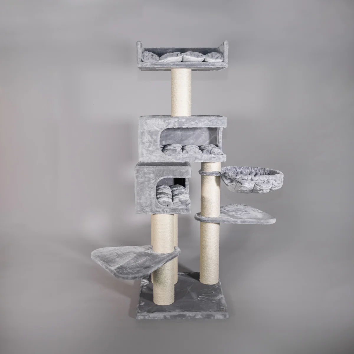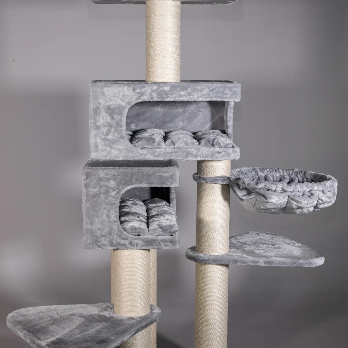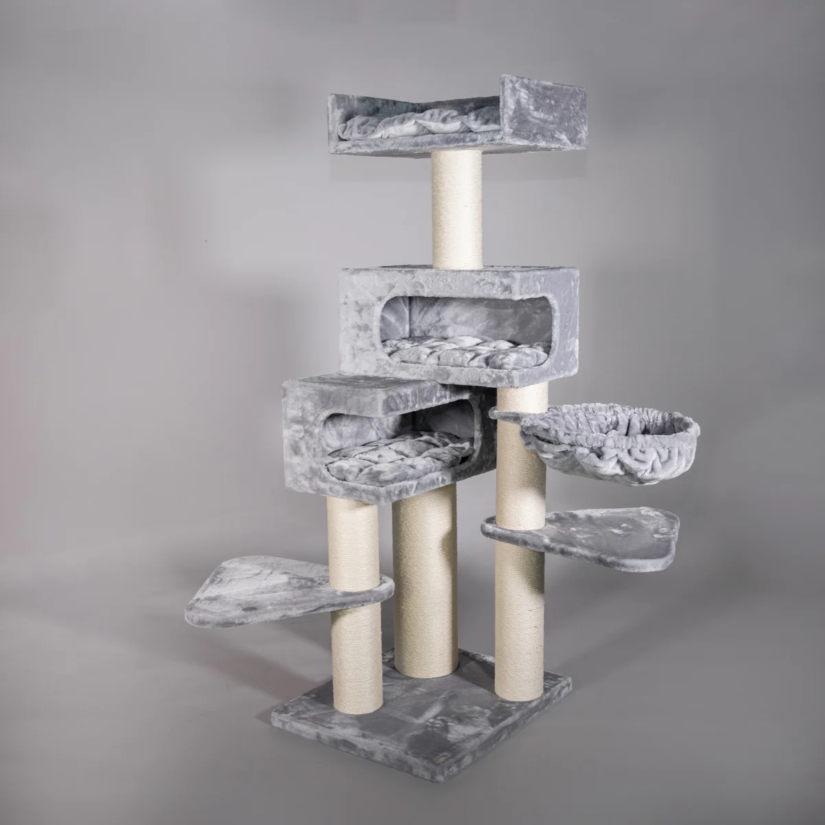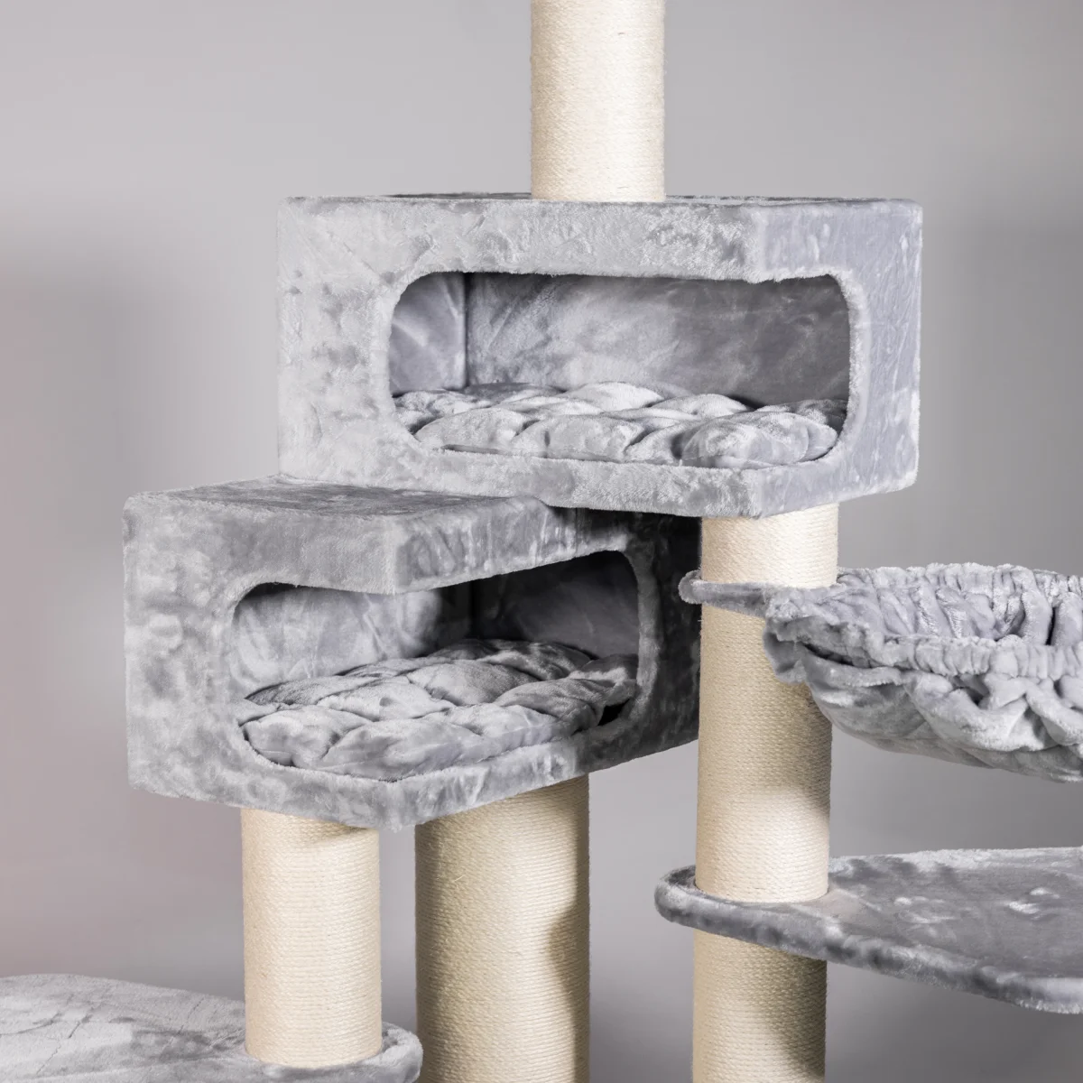 Een citadel is een versterking die een vestingstad domineert en zelfstandig verdedigbaar is. En vanaf deze krabpaal kunnen tot wel 6 katten tegelijk het fort verdedigen! Een citadel kan twee verschillende functies hebben: een burcht of kasteel om de inwoners van de stad in bedwang te houden. En dat is exact wat de Birman Citadel Licht Grijs kan! Uw katten zullen zich tot den einde kunnen uitrekken, verstoppen en klauteren.