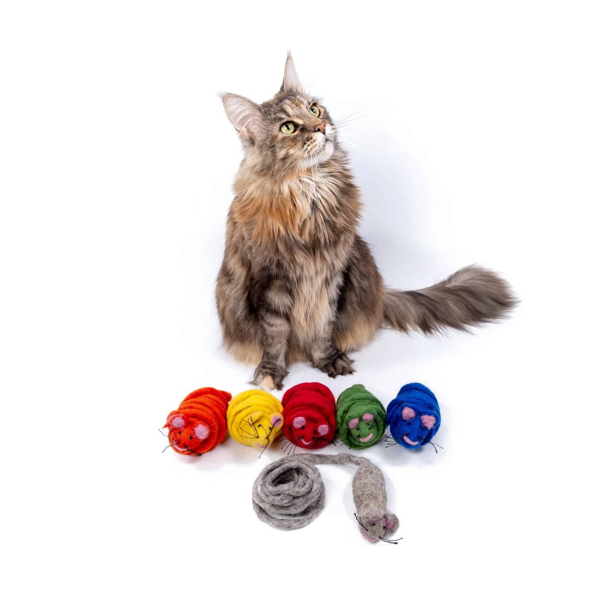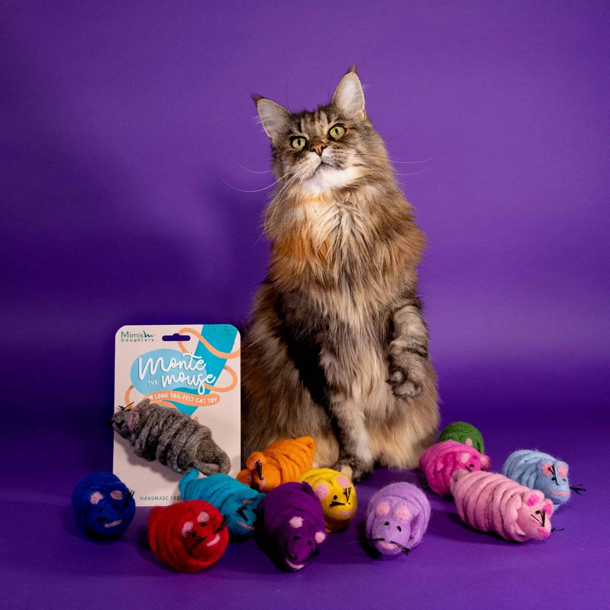 Mimi’s Daughters Monte The Mouse is de muis voor uw kat. Het wol is afkomstig uit Nieuw-Zeeland en wordt natuurlijk gekleurd en hardgemaakt in Nepal. Deze prachtige muis is ideaal voor uw kat. Gemaakt van de hoogste kwaliteit wol en hierdoor niet zomaar stuk te maken door uw kat. Deze muis heeft een staart van wel twee meter lang! Hierdoor heb je veel mogelijkheden hoe jij als kattenliefhebber met de muis en uw kat wilt spelen. De muis kan bijvoorbeeld gebruikt worden als hengel of bal. Katten vinden het ook heerlijk om op Mimi’s Daughters Monte The Mouse te kauwen en tegen aan te trappen.