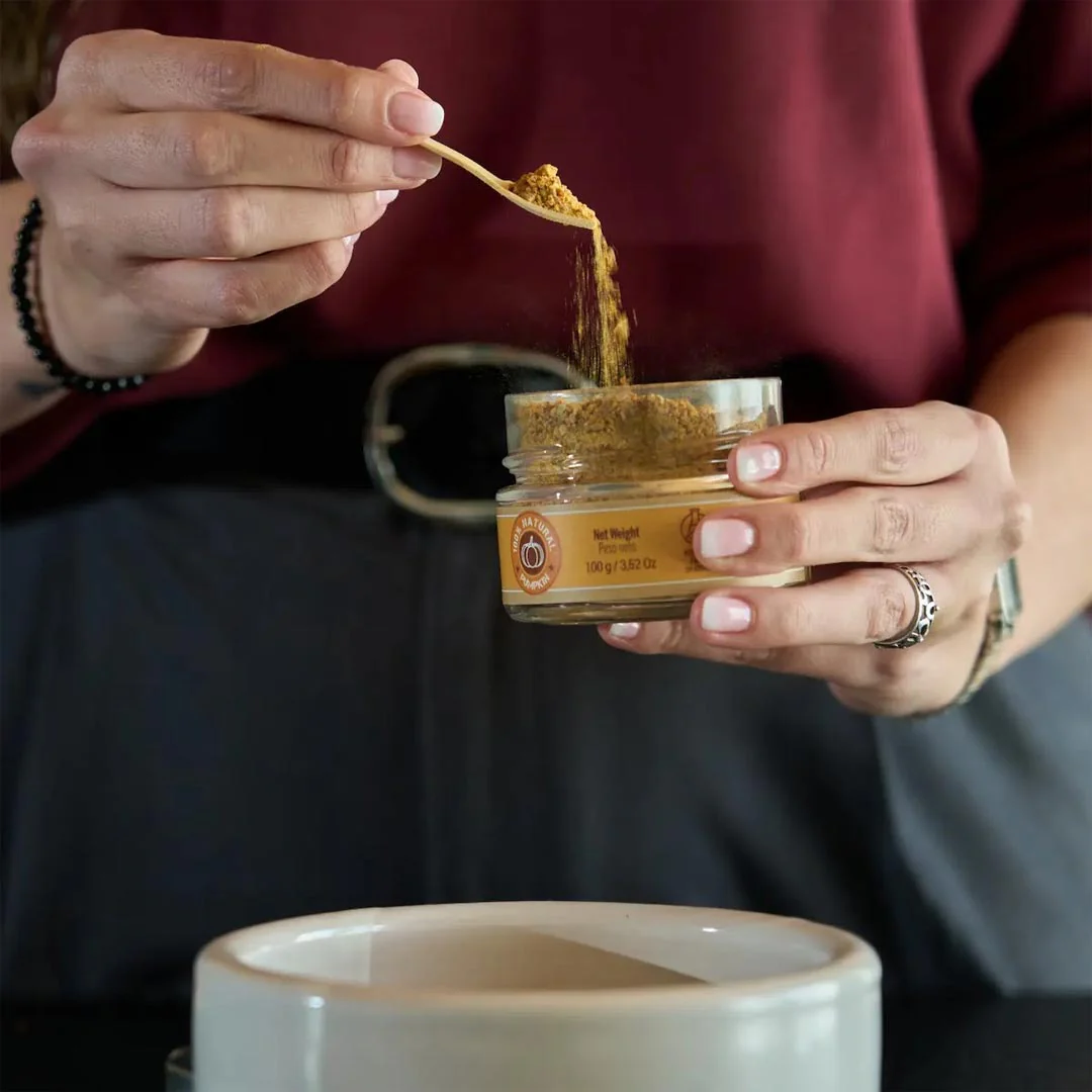Pompoen is van nature rijk aan oplosbare vezels en staat bekend om zijn ondersteunende werking op de spijsvertering. Met een hoog vezelgehalte helpt deze topper de darmwerking in balans te houden en draagt hij bij aan een regelmatige stoelgang. Daarmee is hij een logische keuze bij gevoelige darmen, wisselingen van voeding of als dagelijkse ondersteuning.
