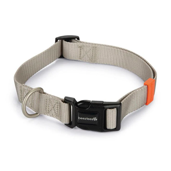 Met de Beeztees Uni hondenhalsband komt jouw hond flitsend voor de dag. Deze eenvoudige en effectieve halsband is gemaakt van sterk nylon en is verstelbaar. De halsband is voorzien van een soort rubberen gespje in een felle kleur, wat zorgt voor een vrolijk accent. De halsband kan gemakkelijk worden vastgemaakt door middel van de kliksluiting. Ook bevat de halsband een verchroomde ring, waaraan verschillende hondenriemen kunnen worden bevestigd.
