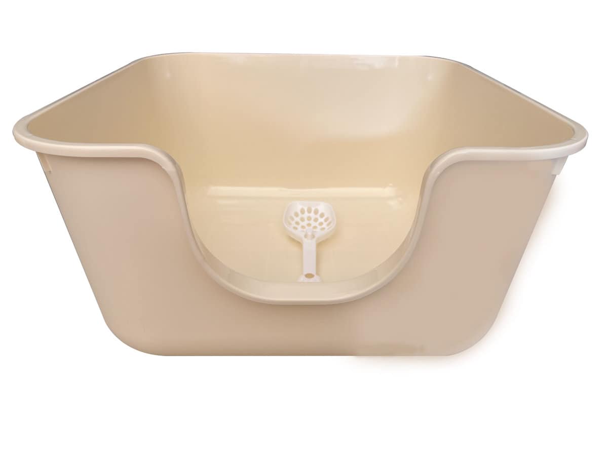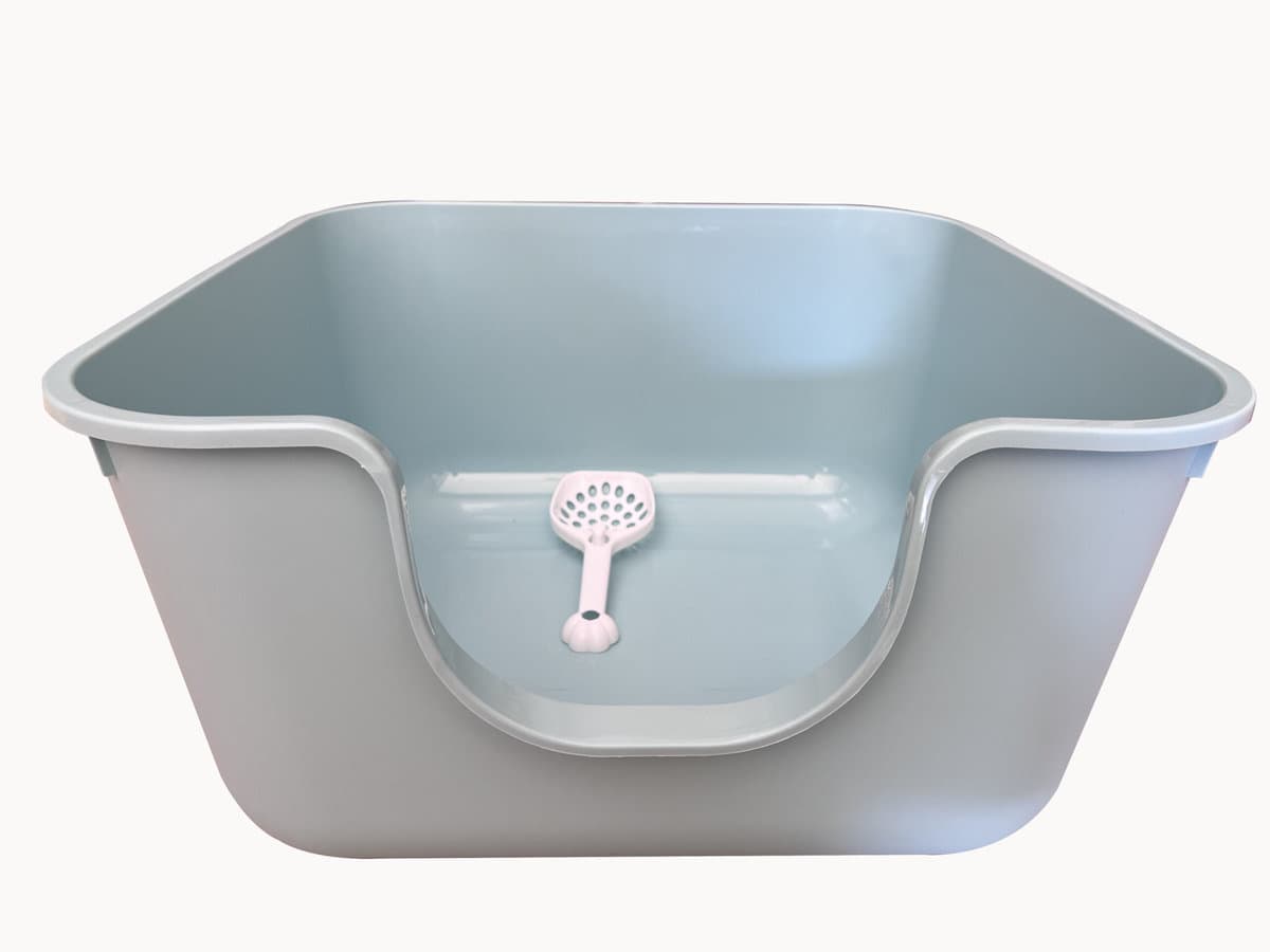 - Verhoogde Randen: De verhoogde randen voorkomen morsen en zorgen ervoor dat het kattengrit netjes binnen de bak blijft, waardoor het schoonmaken een fluitje van een cent is.