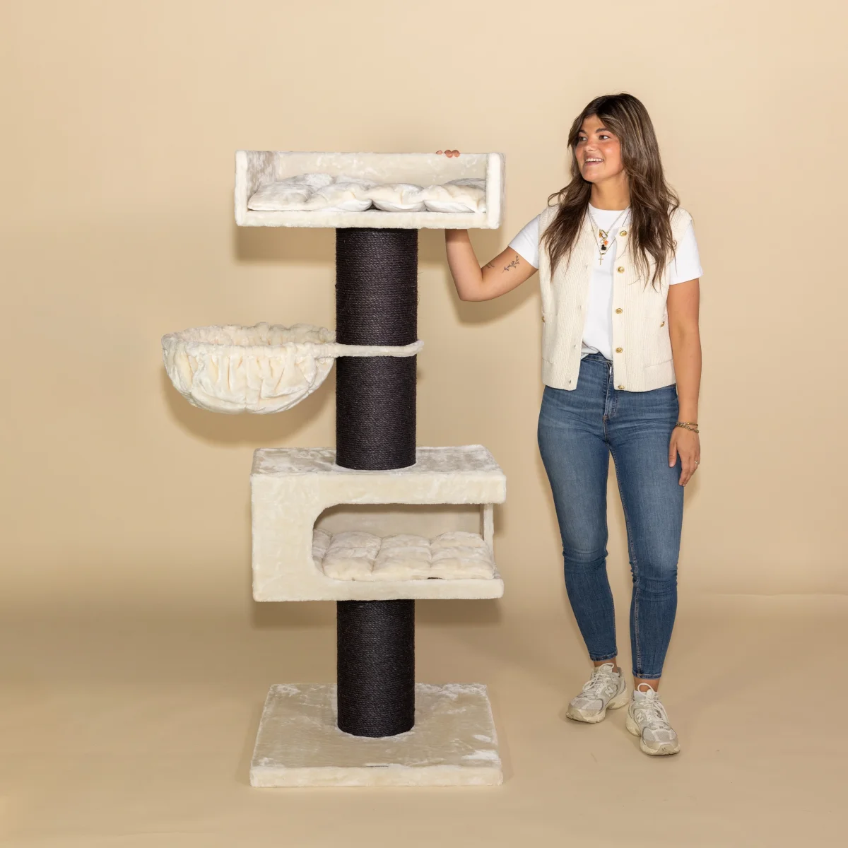 Ontdek het ultieme toevluchtsoord voor jouw Maine Coon of Ragdoll met de indrukwekkende Royalty Retreat! Deze krabpaal is speciaal ontworpen met alle kenmerken die jouw geliefde kat nodig heeft om zich te vermaken en te ontspannen en biedt ruimte tot wel 3 á 4 grote (ras)katten.