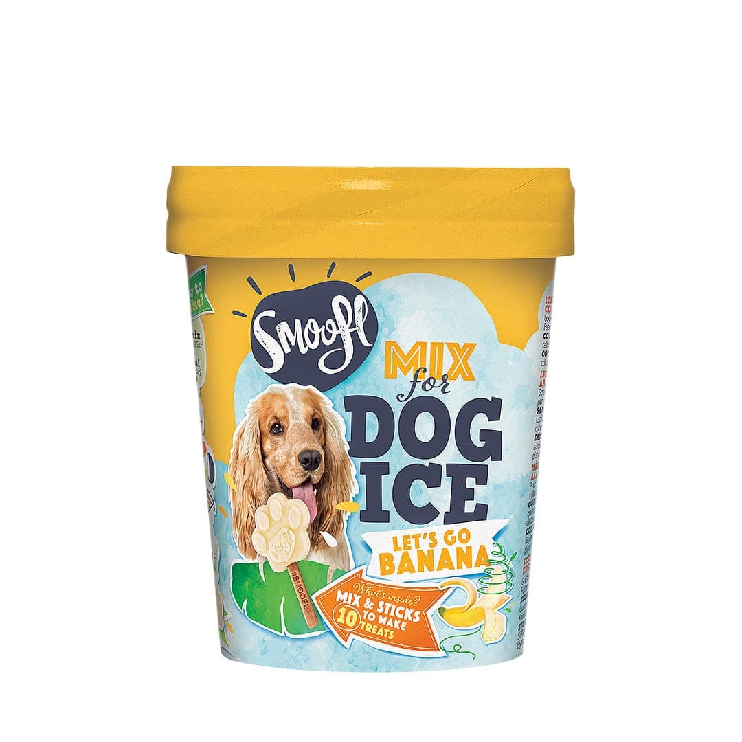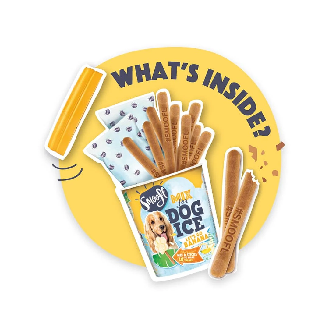 Met de Smoofl ijsmix kan je je eigen hondenijsjes maken, zonder lactose, vetten en laag in calorieën! Aan de Smoofl ijsmix voeg je simpelweg wat water toe, waarna je de mix kunt roeren en in een ijsjesmal giet. Na de ijsjes even ingevroren te hebben, kun je ze aan jouw hond aanbieden. Eén Smoofl-ijsje bevat even veel calorieën als een halve banaan, daarom mag je hond één ijsje per dag. Met één pot ijsmix kun je maximaal 10 ijsjes maken, afhankelijk van de grote van de ijsmal. De 10 eetbare ijsstokjes zijn inbegrepen! Heb je de ijsjes ingevroren? dan zijn deze 14 dagen houdbaar.