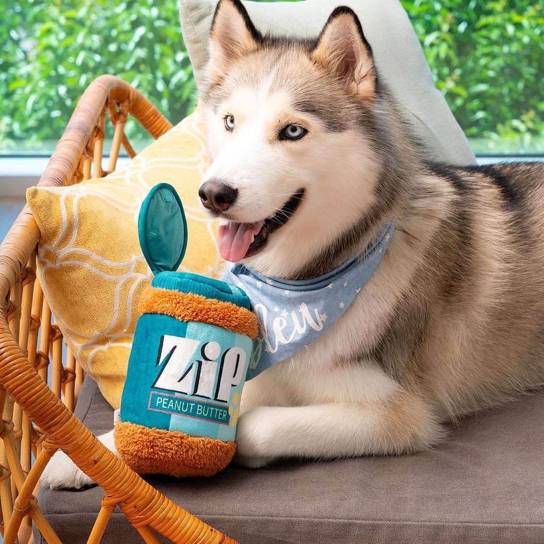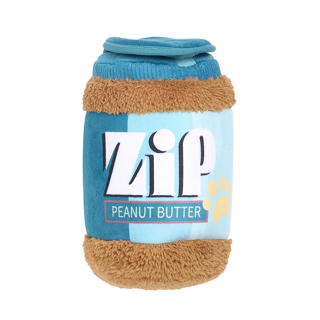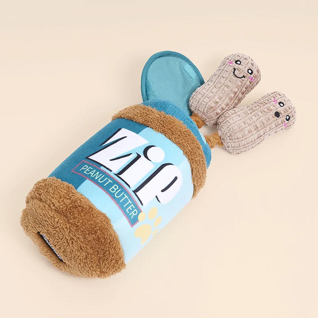 Deze pot met pindakaas is geen gewone knuffel, maar zo’n interactief speeltje waar je hond steeds weer mee wil spelen. Met z’n snuit erin duiken, een pinda te pakken krijgen en meteen weer opnieuw beginnen. De zachte Peanut Miniz zijn voorzien van een ronde pieper en zitten vast aan een elastisch koord, waardoor ze niet onder de bank verdwijnen, maar steeds terugschieten in de pot. Precies dat zorgt ervoor dat je hond wel even bezig blijft.