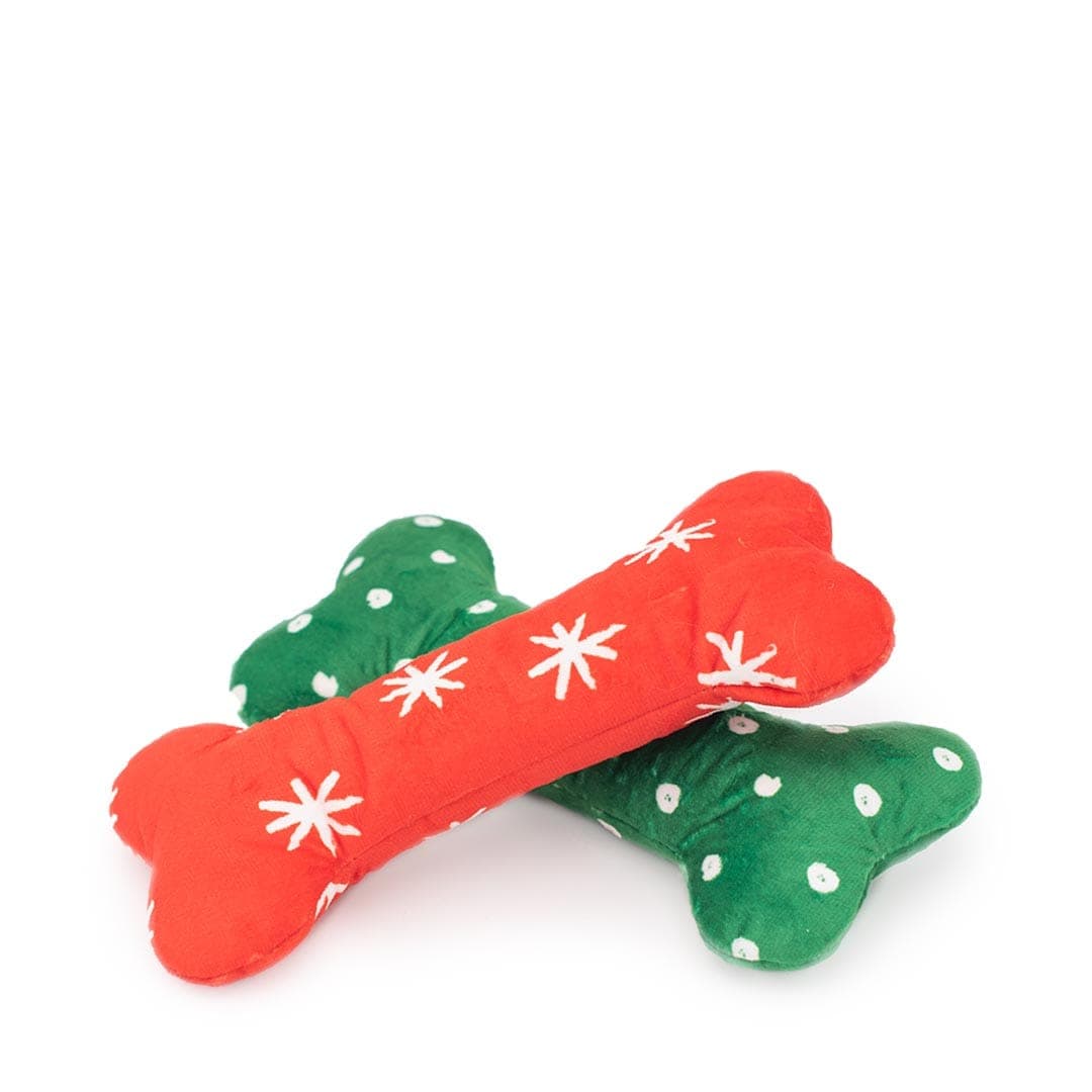 De ZippyPaws Holiday Patterned Bones zijn het perfecte cadeau voor jouw trouwe viervoeter! Deze set met een Holiday-thema bestaat uit twee pluche botten met een feestelijke kerstprint.