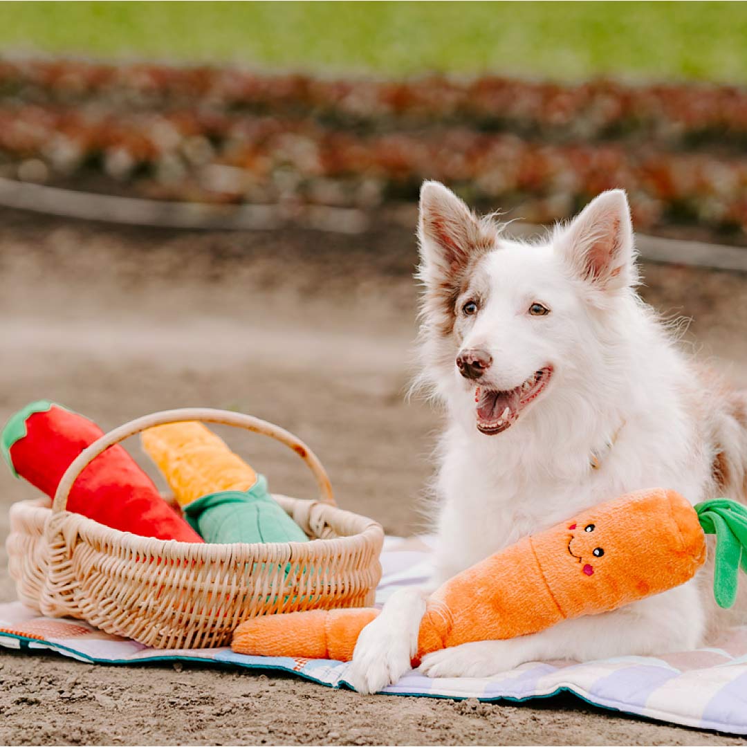 Zet je schrap voor de pluche Jigglerz®-collectie met veggiethema! Ontdek de geheel nieuwe squeakers in de ZippyPaws Jigglerz, deze exlusieve squeakers piepen als de Jigglerz worden geschud!