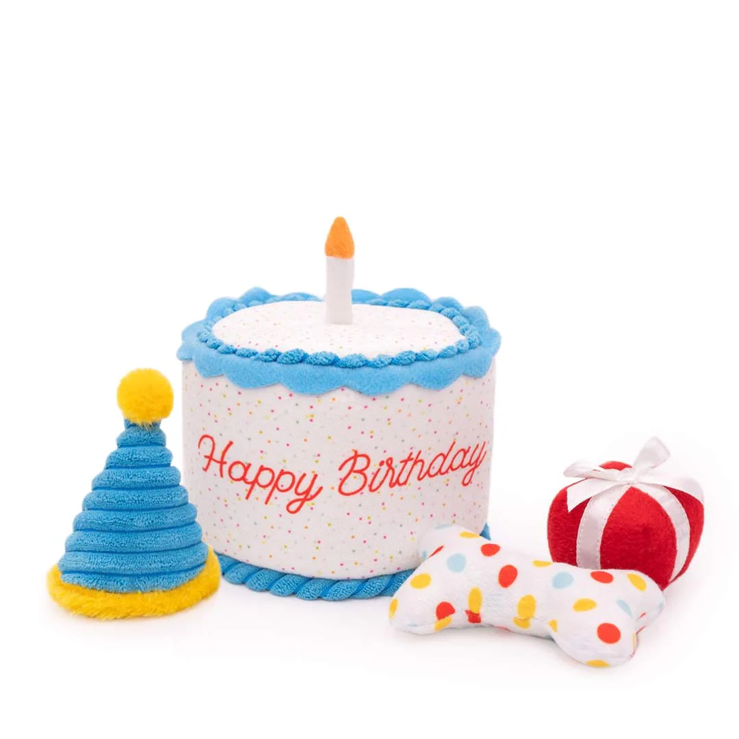 Woef, woef, hoera! Je viervoeter vindt het fantastisch om met zijn neus in de ZippyPaws Zippy Burrow Birthday Cake te duiken! Dit vrolijke, interactieve verstopspeeltje bestaat uit een pluche verjaardagstaart met drie kleine, piepende speeltjes: een feesthoed, een bot en een cadeautje. Verstop de Miniz in de taart en laat je hond ze er één voor één weer uithalen. Zijn alle Miniz gevonden? Dan begint het verstoppen gewoon opnieuw – voorkom verveling en bevorder mentale stimulatie, speelplezier gegarandeerd!