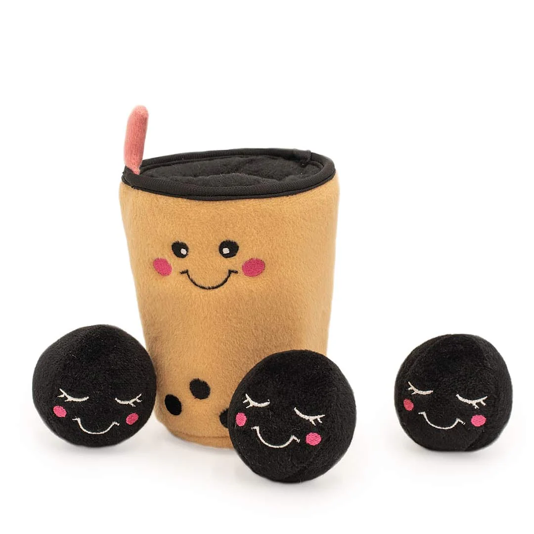 Je viervoeter vindt het fantastisch om met zijn neus in de ZippyPaws Zippy Burrow Boba Milk Tea te duiken! Dit vrolijke, interactieve verstopspeeltje bestaat uit een pluche beker bubble tea met drie kleine, piepende tapioca-balletjes. Verstop de boba-Miniz in de beker en laat je hond ze er één voor één weer uithalen. Zijn alle Miniz gevonden? Dan begint het verstoppen gewoon opnieuw – voorkom verveling en bevorder mentale stimulatie, speelplezier gegarandeerd!