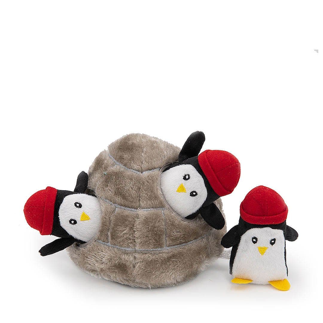Je viervoeter vindt het fantastisch om met zijn neus in de ZippyPaws Zippy Burrow Penguin Cave te duiken! Dit winterse, interactieve verstopspeeltje bestaat uit een pluche grijze iglo met drie kleine, piepende pinguïn-Miniz met rode mutsen. Verstop de Miniz in de iglo en laat je hond ze er één voor één weer uithalen. Zijn alle Miniz gevonden? Dan begint het verstoppen gewoon opnieuw – voorkom verveling en bevorder mentale stimulatie, speelplezier gegarandeerd!