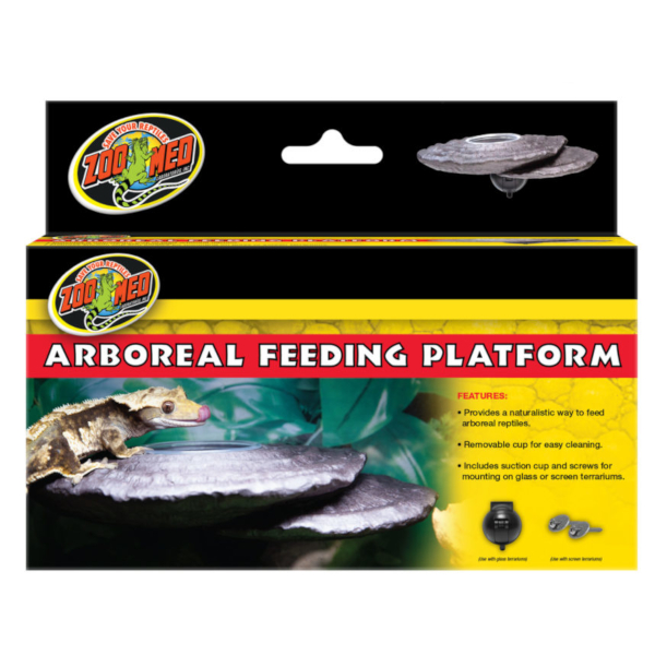 Met het arboreal feeding platform kan een voedplaats gemaakt worden voor klimmende reptielen hoger in het terrarium. Het kan met een extra sterke zuignap aan glas bevestigd worden of met bijgeleverde schroeven in gazen terrariums. De verwijderbare bakjes, arboreal feeding cups, kunnen los bijbesteld worden.