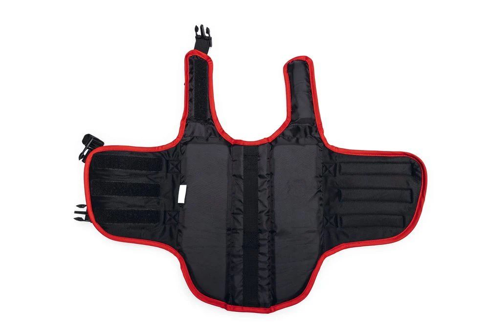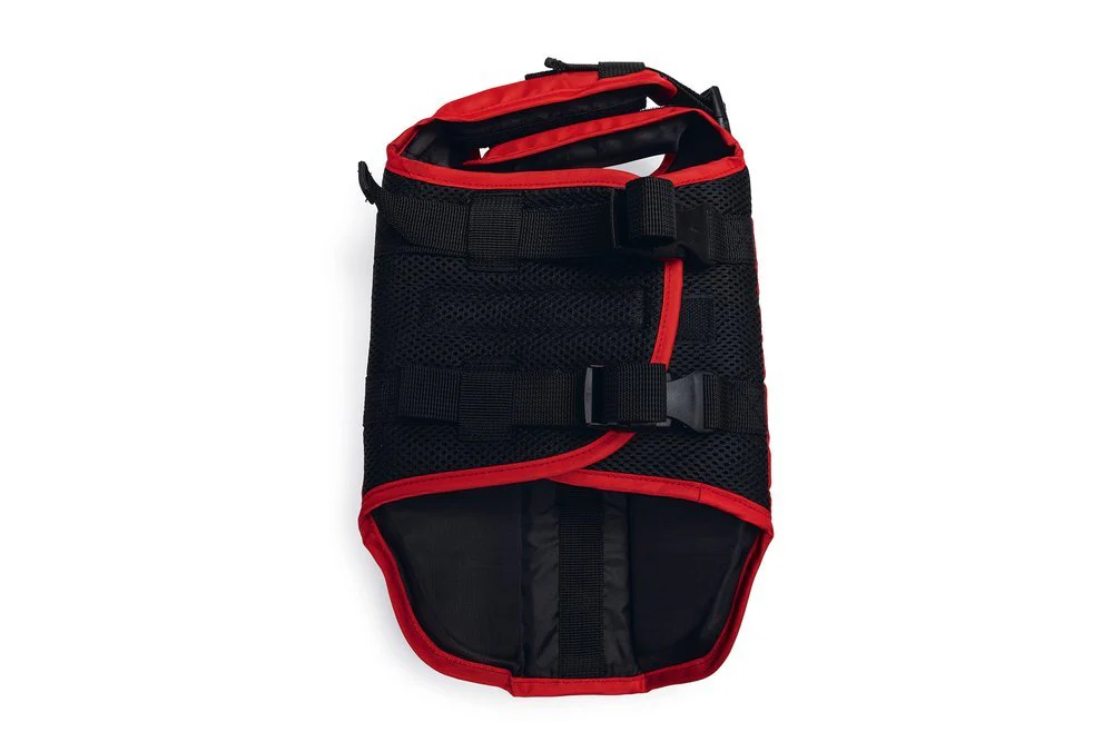 Jouw hond veilig meenemen in of op het water doe je met dit zwemvest voor honden. Dit hondenzwemvest heeft een uitstekend drijfvermogen. Het zwemvest zorgt ervoor dat jouw hond veilig blijft in onverwachte situaties, bijvoorbeeld stromingen of hoge golven. Door de rode kleur is jouw hond ook goed zichtbaar. Wanneer je jouw hond wil leren zwemmen, kan dit vest helpen om jouw hond zekerheid te geven in het water. Om de perfecte pasvorm te bereiken, is het vest zowel op de borst als op de buik te vertellen met klittenband en een kliksluiting. Deze dubbele sluiting zorgt er bovendien voor dat jouw hond niet zomaar uit het vest kan ontsnappen. Op de rug vind je een handig handvat en een stevige D-ring. Spoel het zwemvest na gebruik altijd af met koud water.